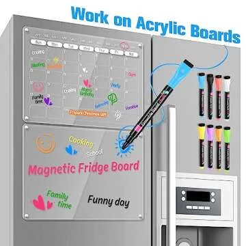 Show moreIntroducing the OORAII Magnetic Liquid Chalk Markers, your ultimate solution for vibrant and versatile writing on a variety of smooth surfaces! Perfectly crafted for acrylic dry erase boards, glass writing boards, mirrors, and much more, these markers offer a unique opportunity to express creativity, plan schedules, and add a pop of color wherever needed. The set includes 8 markers in stunning, vibrant colors, each equipped with a fine 1mm tip that ensures precise and neat writing, even on irregular surfaces. Whether you're decorating glass windows for the holidays or strategizing on your fridge calendar, these wet erase markers provide an exceptional writing experience.