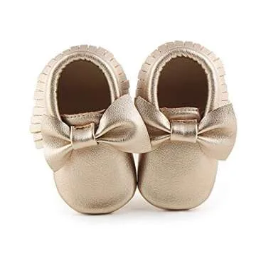 OOSAKU Infant Tolddler Baby Soft Sole PU Leathe Bowknots Shoes (12-18 Months, Gold)