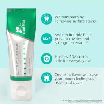 What sets this toothpaste apart is its gentle yet effective formulation. Unlike many whitening toothpastes that can be abrasive, OPALESCENCE is safe for daily use, making it perfect for those looking to enhance their smile over time without damaging enamel. With a refreshing Cool Mint flavor, you'll not only enjoy the benefits of whitening but also the confidence of fresh breath.