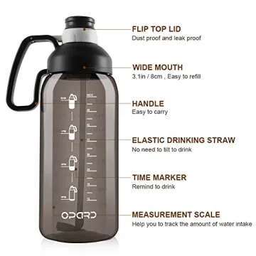 Opard Half Gallon Water Bottle with Time Marker, 64oz Motivational Water Jug Large Sports Water Bottle with Straw Handle BPA Free for Gym Fitness (Black)