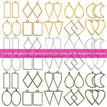 Open Bezels for Resin, Shynek 60Pcs Hollow Frame Pendants Resin Craft Bezels Jewelry Molds for Resin Casting, Necklaces Earrings Making Supplies