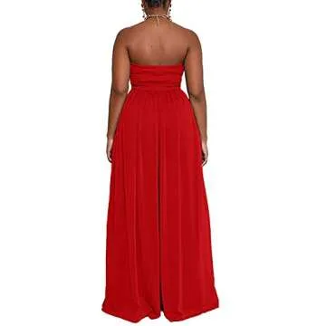 Ophestin Women's Strapless Tube Wide Leg Jumpsuits Smocked Women Jumpsuits Dressy Casual Flowy One Piece Jumpsuits Rompers Red L