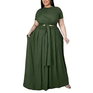 Ophestin Womens Plus Size 2 Piece Dress Outfits Solid Color Crop Top Maxi Skirts Set