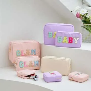 Opnseqia Preppy Patch Makeup Bags - Stylish Glitter Letters Cosmetic Pouch