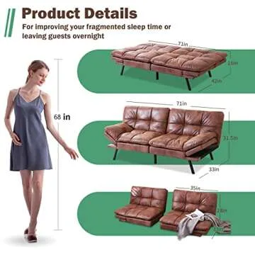 Equipped with a remarkable 3-inch thick memory foam mattress, this futon promises superior comfort for both lounging and sleeping, eliminating the need for cumbersome toppers. Enhanced for safety, it boasts materials certified by CertiPUR-US, ensuring a healthy environment for your family. The premium faux leather upholstery not only elevates your home’s aesthetics but also provides an easy-to-clean surface, making it simple to maintain a polished appearance after spills or wear. Whether you’re watching your favorite show or enjoying a restful sleep, this versatile sofa bed adjusts to your needs with its customizable backrests and armrests.