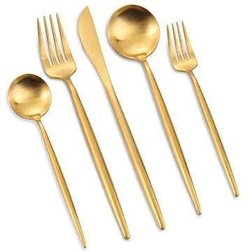 Show moreIntroducing the **OPOLIA Matte Gold Silverware Set**, a stunning 20-piece flatware set that redefines elegance at your dining table. This exquisite collection includes everything you need for a complete dining experience: 4 dinner knives, 4 dinner forks, 4 dinner spoons, 4 teaspoons, and 4 salad forks. Crafted from high-quality stainless steel, this set is designed not only to look breathtaking but also to last for years, making it the perfect addition to your kitchen. The matte gold finish adds a luxurious touch, perfect for both everyday use and special occasions.