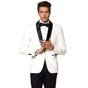 Opposuits Men's Formal Outfit - Premium Tuxedo Suit - Christmas - Slim Fit - White and Black - Includes Blazer, Pants and Bow tie