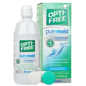Show more Introducing the Opti-Free Puremoist Multi-Purpose Contact Lens Cleaning and Disinfecting Solution, your ultimate partner in detailed contact lens care. This 10 FL Oz solution is specially crafted to deliver all-day comfort while ensuring optimal hygiene for your contact lenses. Recommended by eye care professionals, it offers a reliable shield against discomfort throughout your busy day. Thanks to its innovative HydraGlyde Moisture Matrix, you can count on this solution to keep your lenses moist, comfortable, and protected from deposits and debris.