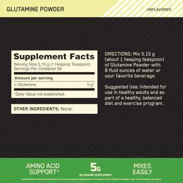 One 300 gram container (58 servings) of Optimum Nutrition L-Glutamine Muscle Recovery Powder
