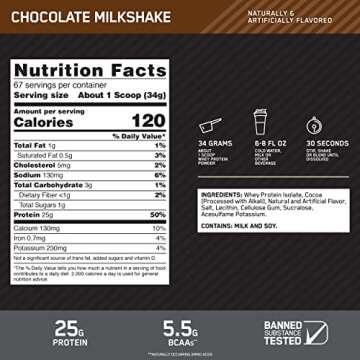 Optimum Nutrition Whey Protein Isolate, Whey Isolate Protein Powder, Chocolate Protein Powder, Chocolate Shake Flavor, 5.02 Pound, 67 Servings (Packaging May Vary)