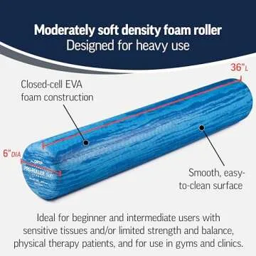 OPTP PRO-Roller Soft Density Foam Roller – Low Density Soft Foam Roller for Physical Therapy, Pilates Foam Roller and Yoga Foam Roll Exercises, and Muscle Recovery - Blue 36" x 6"