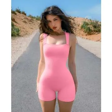 The charming square neck and sleeveless design exude a fashionable edge, enhancing your silhouette while ensuring you stay cool and comfortable during the warmer months. Its trendy ribbed texture not only delivers a chic look but also incorporates tummy control, sculpting your curves elegantly. Say goodbye to worrying about see-through fabric, as this romper is crafted with a thickness that guarantees full coverage and confidence.