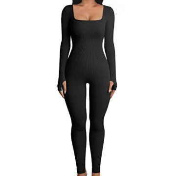 OQQ Women Long Sleeve Yoga Jumpsuits Workout Ribbed Bodysuits Pants Sexy One Piece