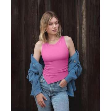 OQQ Women's 2 Piece Tank Tops Ruched Crew Neck Sleeveless Basic Stretch Tee Shirts Crop Camis Rose White