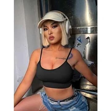 OQQ Women's 3 Piece Cami Crop Top Ribbed Seamless Removable Cups Workout Exercise Sports Bra, Black Grey Beige, Large