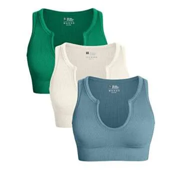 Show moreIntroducing the OQQ Women's 3 Piece Medium Support Crop Top Seamless Ribbed Removable Cups Workout Yoga Sport Bra, a sensational blend of comfort and style designed to support your active lifestyle! Available in a beautiful selection of colors including Green, Beige, and Blue, these crop tops are not just athletic wear; they are a fashion statement. Crafted from high-quality, soft ribbed fabric, these tops feature seamless construction that ensures smooth lines against your skin. The removable cups provide additional versatility, allowing you to customize your support based on your needs, whether you're heading to the gym or enjoying a casual outing.