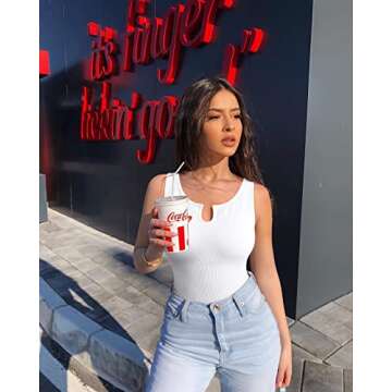 Show moreThe OQQ Women’s 3 Piece Sexy Ribbed One Sleeveless Tank Top Bodysuit set is your ultimate wardrobe game-changer. Crafted from high-quality, soft ribbed fabric, this stylish collection includes a combination of three stunning colors: classic Black, vibrant Rose, and pristine White. Tailored to enhance the feminine silhouette, each bodysuit features a sleeveless design that offers a sleek look while allowing for maximum mobility and comfort. Whether dressing for an intense workout or a chic night out, these bodysuits provide a perfect fit for any occasion.