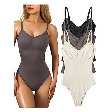 Show more Introducing the OQQ Women's 3 Piece Sexy Ribbed Sleeveless Adjustable Spaghetti Straps Shapewear Top Bodysuit in stunning shades of Black, Tea Leaf, and Beige. This stylish, figure-enhancing bodysuit is designed for comfort and versatility, perfect for layering or wearing confidently on its own. Crafted with high-quality, ribbed material, it hugs your curves for a smooth silhouette while providing breathable stretch to move with you throughout the day. The adjustable spaghetti straps ensure a customizable fit for all body types, while the modern design makes it an essential addition to your wardrobe.