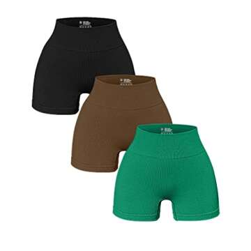 OQQ Women's 3 Piece Yoga Shorts - High Waist Ribbed Seamless Leggings