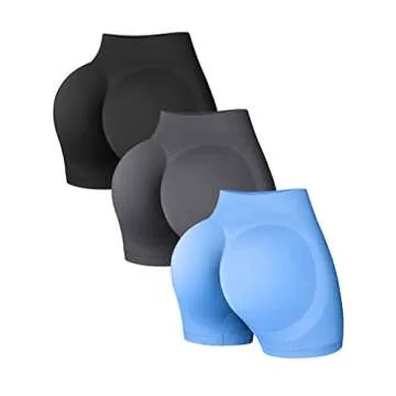 OQQ Women's 3 Piece Yoga Shorts Ribbed Workout High Waist Butt Lifting Athletic Leggings Black Grey Candyblue