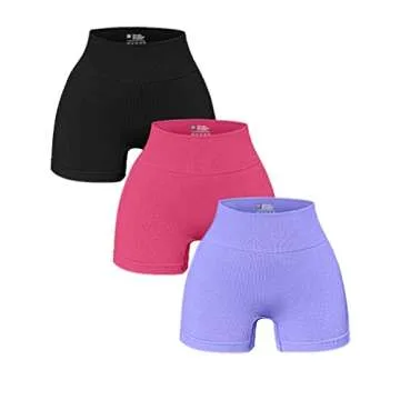 OQQ Women's 3 Piece Yoga Workout Athletic Seamless High Wasit Gym Legging Shorts, Black Coral Purple, Medium
