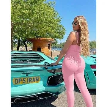 Unleash your inner athlete with the OQQ Women's Ribbed One Piece Adjustable Spaghetti Straps Top Yoga Exercise Jumpsuit Romper in a stunning cotton candy pink hue. Designed for ultimate style and comfort, this bodysuit is perfect for exercise enthusiasts and fashionistas alike. Its sleek ribbed fabric hugs your body beautifully, giving you a flattering fit that enhances your natural curves while ensuring maximum flexibility during workouts.