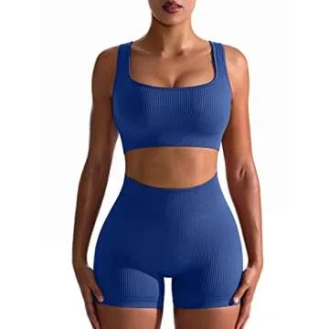 Show more Experience the perfect blend of comfort, style, and performance with the OQQ Women's Workout 2 Piece Seamless Ribbed High Waist Legging and Bra Outfit. Designed for those who aspire to excellence in their fitness journey, this set features a seamless ribbed construction that not only enhances your silhouette but also provides the necessary flexibility and support during any workout. The high-waisted leggings offer a flattering fit that hugs your body in all the right places, while the stylish dark blue color adds a trendy touch that stands out in any gym. Elevate your workout wardrobe with this must-have ensemble, perfect for both high-intensity workouts and leisurely activities.