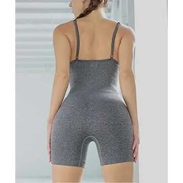 OQQ Women's Yoga Romper Sexy One Piece Spaghetti Strap Tummy Control Padded Sports JumpSuit Bra, Grey, Medium