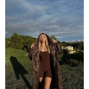 OQQ Women's Yoga Workout Ribbed Square Neck Sleeveless Sport Romper, Darkbrown, Small