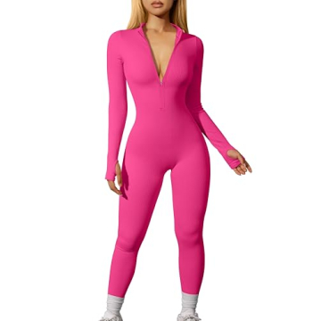 Show moreIntroducing the OQQ Women Yoga Jumpsuits Workout Ribbed Long Sleeve Zip Front Sport Jumpsuit in a stunning rose color—a perfect blend of style, comfort, and functionality that is set to elevate your wardrobe. Designed with a thoughtful combination of 90% Nylon and 10% Spandex, this jumpsuit provides you with a soft, stretchy fabric that hugs your body in all the right places, ensuring a flattering silhouette for all shapes and sizes. Whether you’re gearing up for a night out or just need something comfortable for your daily errands, this jumpsuit transitions beautifully from day to night, accommodating your every need while keeping you radiant and confident.