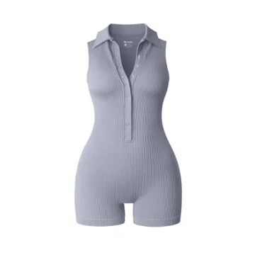 OQQ Women Yoga Rompers - Ribbed V Neck Sleeveless Tummy Control for Summer Style