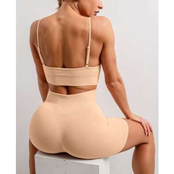OQQ Yoga Outfit for Women Seamless 2 Piece Workout Gym High Waist Leggings with Sport Bra Set Pink, Small