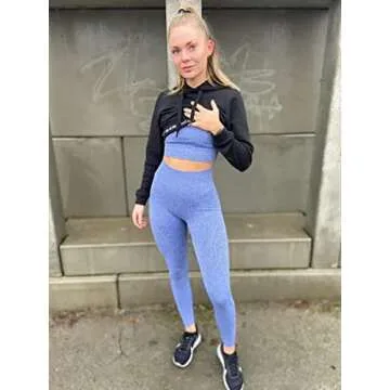OQQ Yoga Outfit for Women Seamless 2 Piece Workout High Waist Leggings with Sport Bra Activewear Set Blue
