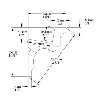 Show moreTransform your space with the exquisite **Orac Decor C323 Crown Moulding**—the perfect blend of elegance and functionality! Measuring 2-1/8" in height, 1-5/8" in projection, and featuring a generous 2-3/4" face, this crown moulding is designed to enhance any architectural design style effortlessly. Crafted from **Purotouch**, a premium high-density polyurethane foam developed exclusively by Orac Decor, the C323 boasts pronounced detailing and strikingly crisp lines that bring sophistication to your interiors. The moulding comes primed white, ready for painting, making it an easy addition to your home decor whether you want a classic white finish or a bold new color.