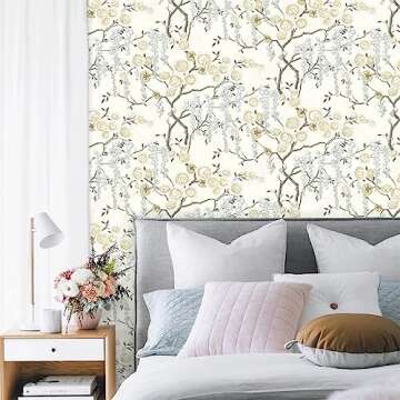 Orainege Floral Peel and Stick Wallpaper Vintage Floral Contact Paper 17.7in ×118.1in Beige Floral Wallpaper Peel and Stick Removable Wallpaper for Bathroom Wall Paper Waterproof Adhesive Wallpaper