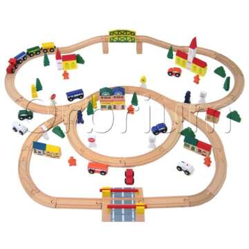 Orbrium Toys 100 Piece Triple Loop Wooden Train Set Track Generic Fits Thomas Brio