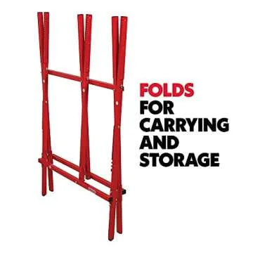 This saw horse features a foldable design that makes it incredibly convenient to store when not in use, taking up minimal space in your workshop or garage. The practical buck saw design incorporates serrated teeth that clamp onto the wood securely, ensuring maximum stability during your cutting tasks. Plus, with its adjustable height, you can customize the stand to suit your needs, providing more versatility than traditional sawhorses. It’s the perfect tool whether you’re splitting logs for firewood or tackling larger woodworking projects.