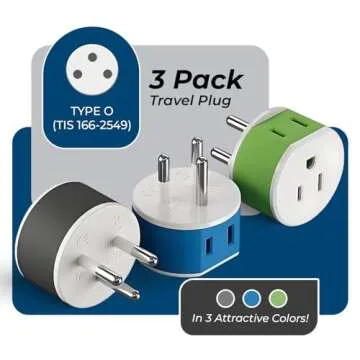OREI Thailand Power Plug Adapter with 2 USA Inputs - Travel 3 Pack - 2 x Type O, 1 x Type C (US-18) Safe Grounded Use with Cell Phones, Laptop, Camera Chargers, CPAP, and More