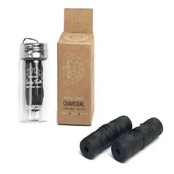 Organic Bamboo Fibre with Activated Charcoal Floss in Glass jar + REFILLS with Tea Tree and Peppermint essential oils 90 m / 99 yds total - by Lucky Teeth (1+2 Pack)
