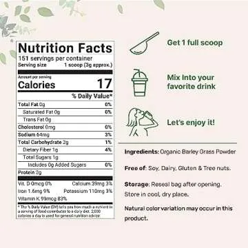 Organic Barley Grass Powder, 16 Ounces | US Grown | Rich in Vitamins, Minerals, Fibers, & Antioxidants | Superfood Greens Mix for Immune Health and Digestion Support | Non-GMO