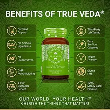As a testament to its quality, this supplement holds USDA Organic Certification, a mark of excellence that signifies compliance with higher regulatory standards. Unlike many competing brands, True Veda's commitment to quality is evident, utilizing only organic green tea extract free from fillers and artificial preservatives, making it a perfect choice for vegetarians and vegans.