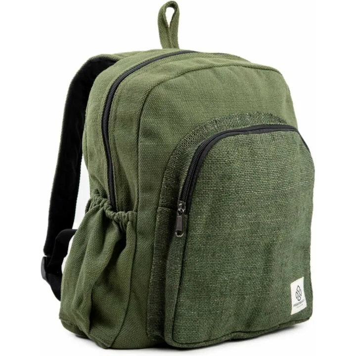 The backpack is made from 100% organic hemp, making it an eco-friendly choice.