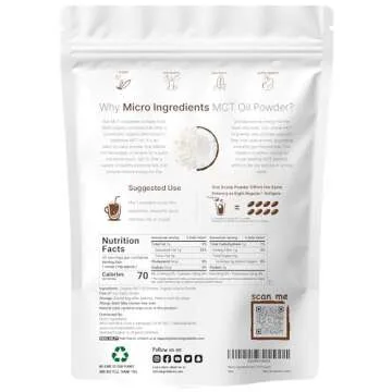 Organic MCT Oil Powder with Prebiotic Fiber,1 Pound(16 Ounce), Fast Fuel for Body and Brain, C8 MCT Oil for Coffee Creamer, No GMOs, Keto Diet, Vegan