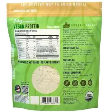 Organic Muscle Organic Vegan Protein Powder - Plant Based Vanilla Protein Powder with Pea, Hemp, Brown Rice, Chia Seed & Amino Acids - Low Calorie for Muscle Growth & Speed Recovery