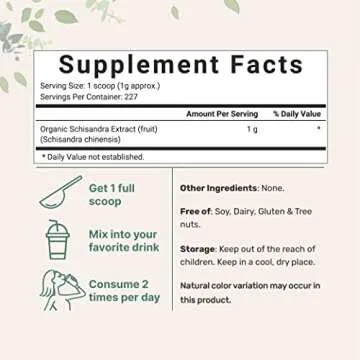 Show moreDiscover the power of health and vitality with the Micro Ingredients Organic Schisandra Berry Powder. This premium adaptogenic supplement is designed to rejuvenate both the body and mind, promoting natural balance and functionality for those who seek a holistic approach to health. Sourced from the finest organic Schisandra berries, this 8-ounce package ensures you receive one of nature's most potent allies free of GMOs, additives, or artificial ingredients. Whether you're looking to enhance liver function, brain health, or overall vitality, this powder delivers with each scoop!