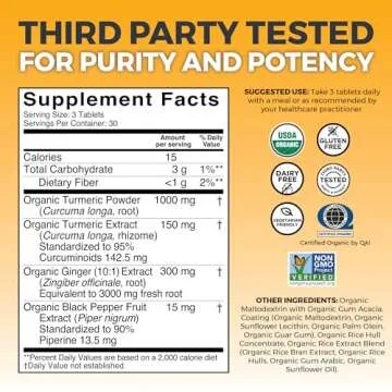 Organic Turmeric Ginger Supplements for Joint Support and Heart Health -1450 mg per Serving Tumeric and Ginger Pills with 150 of Turmeric Standardized to 95% Curcuminoids, 15mg Black Pepper Extract