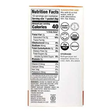 Show moreElevate your wellness routine with the Organic Turmeric Latte Plant-Based Superfood Mix, a vibrant blend designed to nourish your body and invigorate your morning. This delightful mix not only encapsulates the earthy richness of organic turmeric but also incorporates 2g of MCT oil per serving, providing a quick source of energy and promoting cognitive function. Each box includes 10 convenient single serving packets, perfect for on-the-go enjoyment or a cozy home ritual. Whether you're blending it into a warm latte, smoothie, or your favorite plant-based milk, this superfood mix is a delicious way to start your day on the right note.