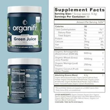 Show moreIntroducing the Organifi Green Juice, your ultimate wellness companion designed for anyone on the journey to better health! This organic greens powder combines power-packed superfoods like spirulina, ashwagandha, chlorella, and moringa, creating a nutrient-rich elixir perfect for your smoothies or a quick glass of water. Each serving is a carefully crafted blend, delivering essential nutrients that promote immune health while effectively combating daily stress.