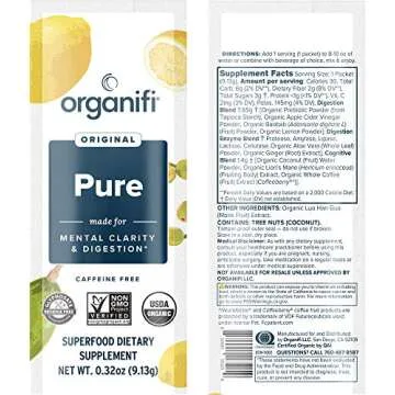 Introducing the Organifi Pure Smart Packs - your go-to solution for delicious, refreshing brain fuel and digestive support! Infused with a hint of lemon, this natural superfood blend offers a unique combination of organic ingredients specifically designed to enhance cognitive function and support gut health. With every sip, experience the revitalizing power that combats sluggish thinking, forgetfulness, and brain fatigue, making it easier for you to tackle your day with clarity and focus.