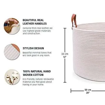 OrganiHaus White Large Baskets for Organizing 20x13, Large Blanket Basket for Living Room, Toy Storage Basket for Kids, Large Rope Basket w/Handles, Big Woven Hamper, Round Basket for Blankets